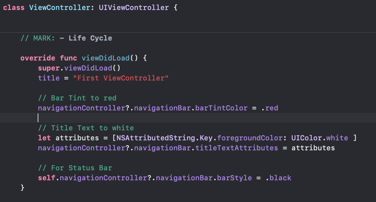 navigationController?.navigationBar.barTintColor = .red