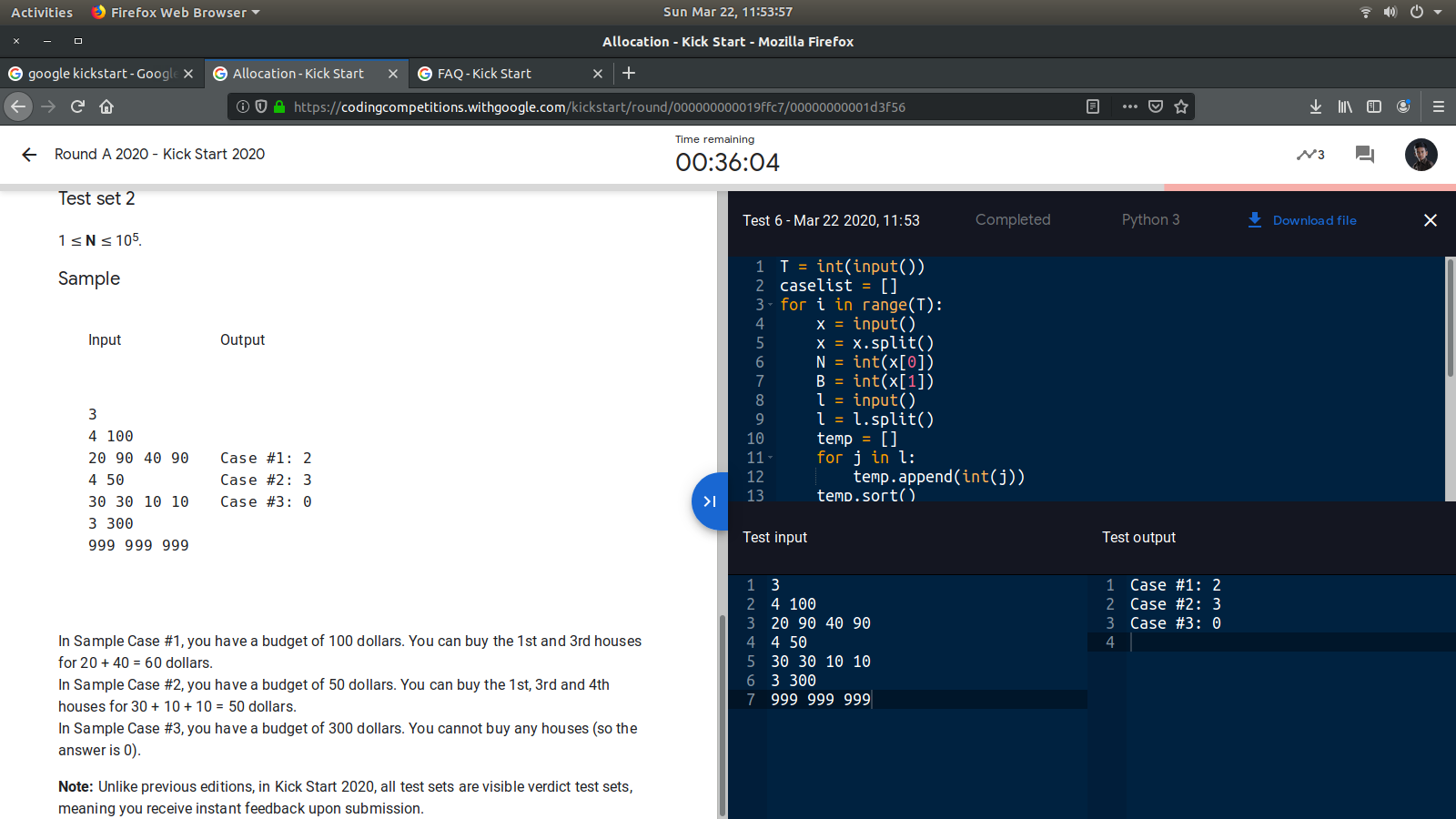print(f"Case #{test+1}: {purchased}")通过了样本和两个测试