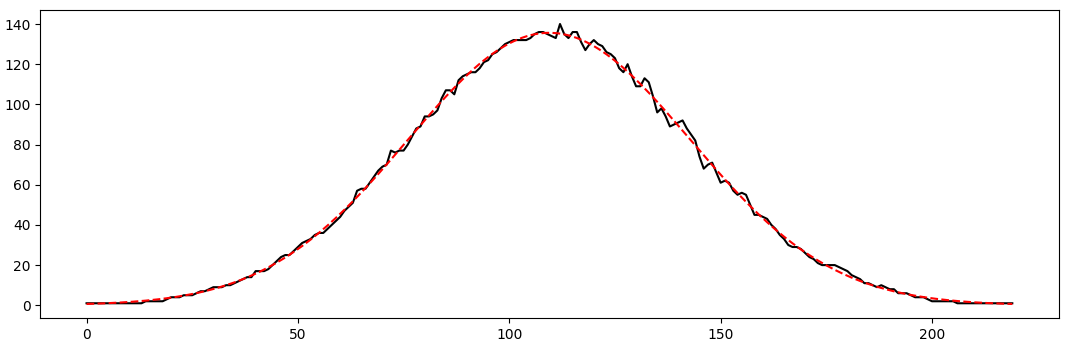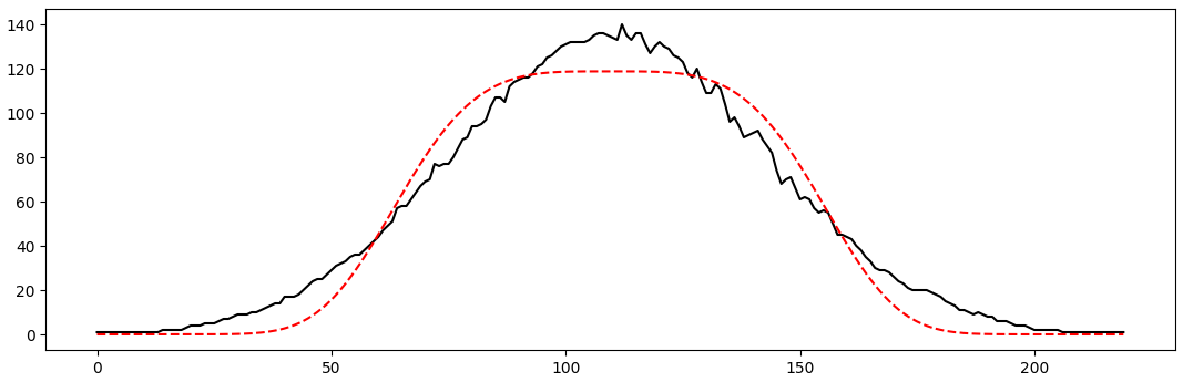 我开始用Python对我的曲线进行简单的高斯拟合。拟合返回高斯曲线,其中对I、x0和sigma的值进行了优化。(我使用函数curve_fit)高斯曲线方程: