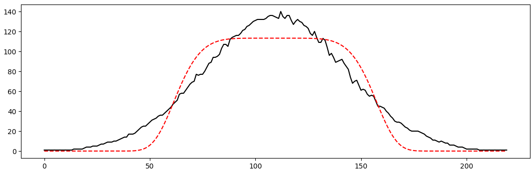 vals = super_gaussian(x, *opt)‘'vals’是你需要绘制的,那是拟合的超高斯函数。