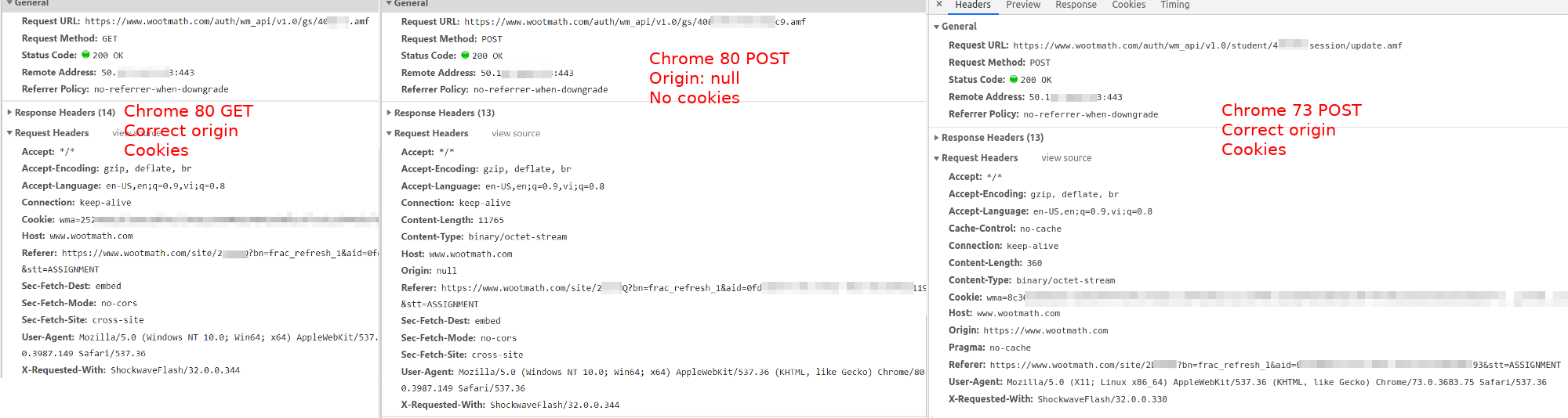 用户已经开始在Chrome 80下使用基于Flash的通信出现问题:POST请求没有发送Cookies。