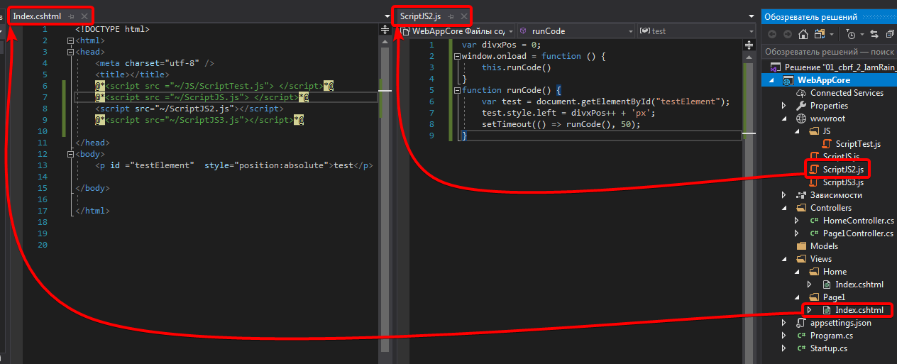 如果我正确理解,那么当进入页面https://localhost:44389/Page1/Index时,文本应该移动.