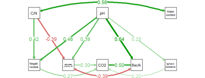 nodeLabels = c("Negati-\nvicutes","cand_class\n_MB_A2_108", "CO2", "Bacilli","Ignavi-\nbacteria","C/N", "pH","Water\ncontent"),