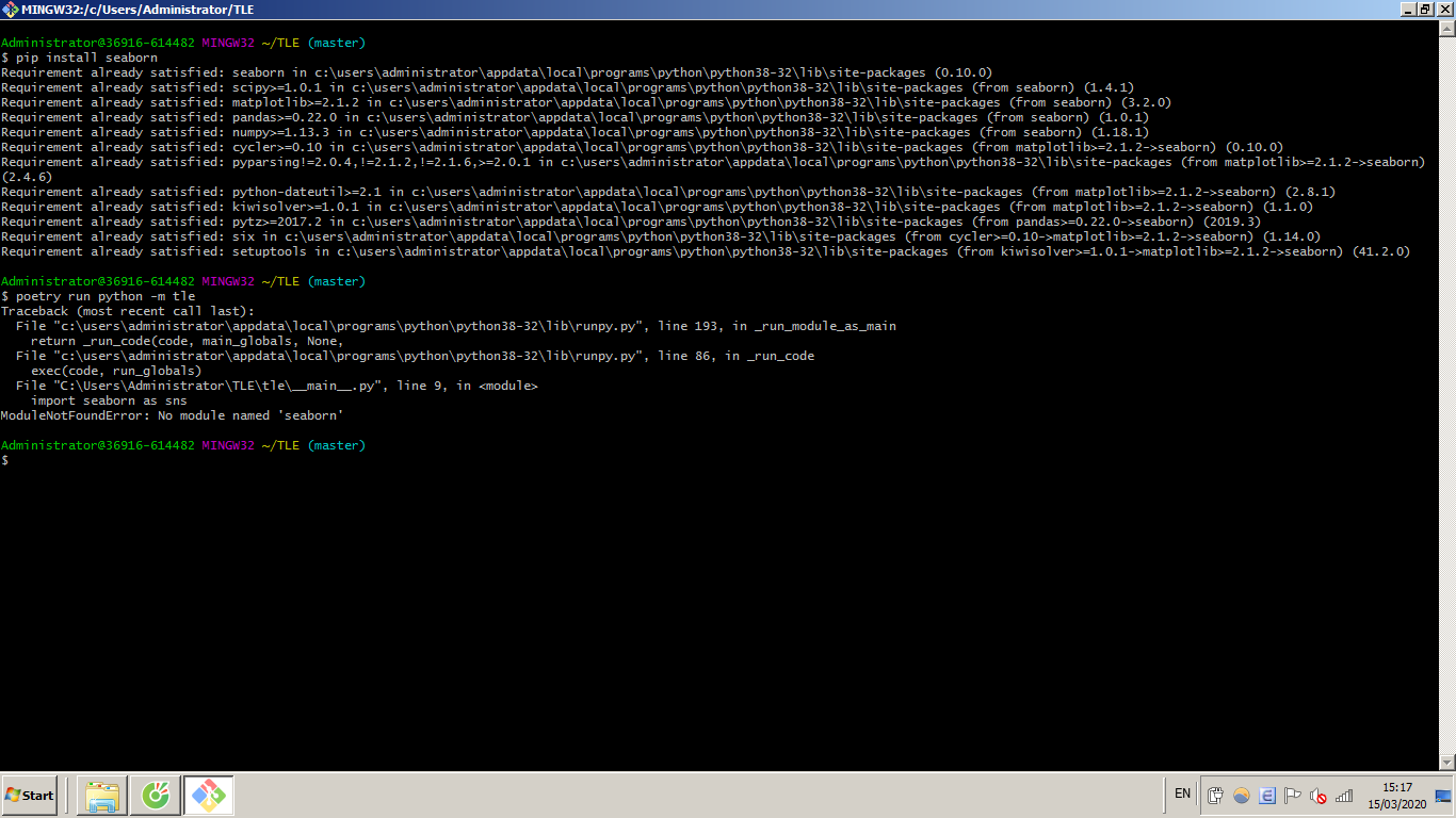 有什么问题吗?我该怎么做才能纠正它的错误?我是否正确地安装海运?我使用Windows、git作为shell和Python3.8.2。