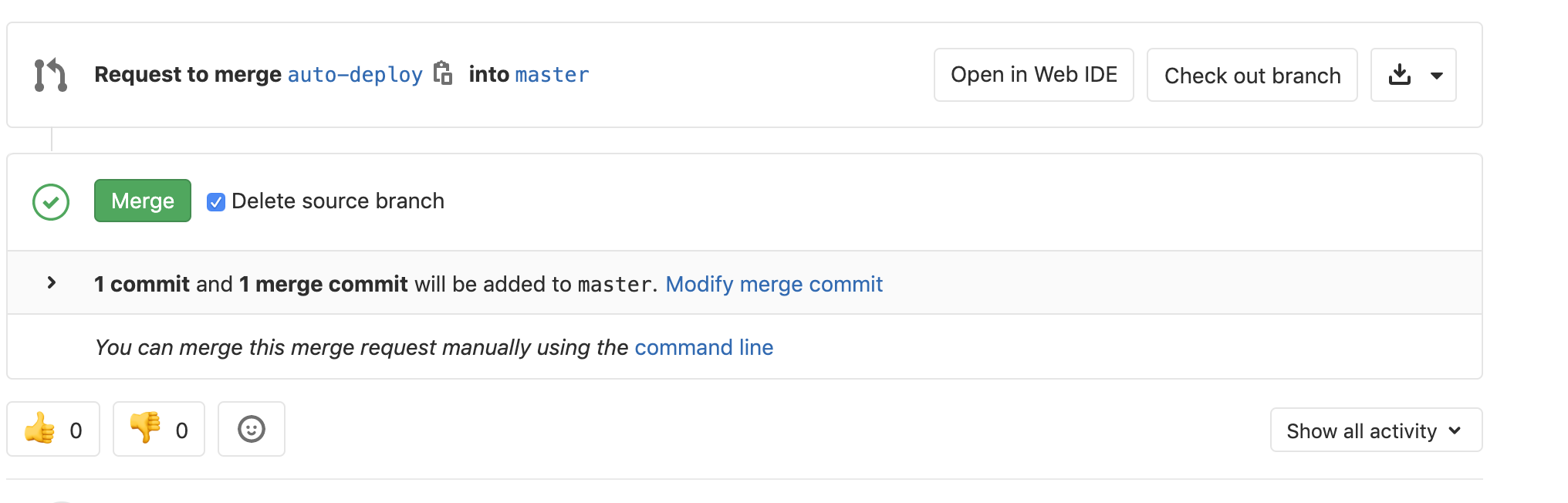 然后,PR/MR在没有管道运行的情况下显示如下:
