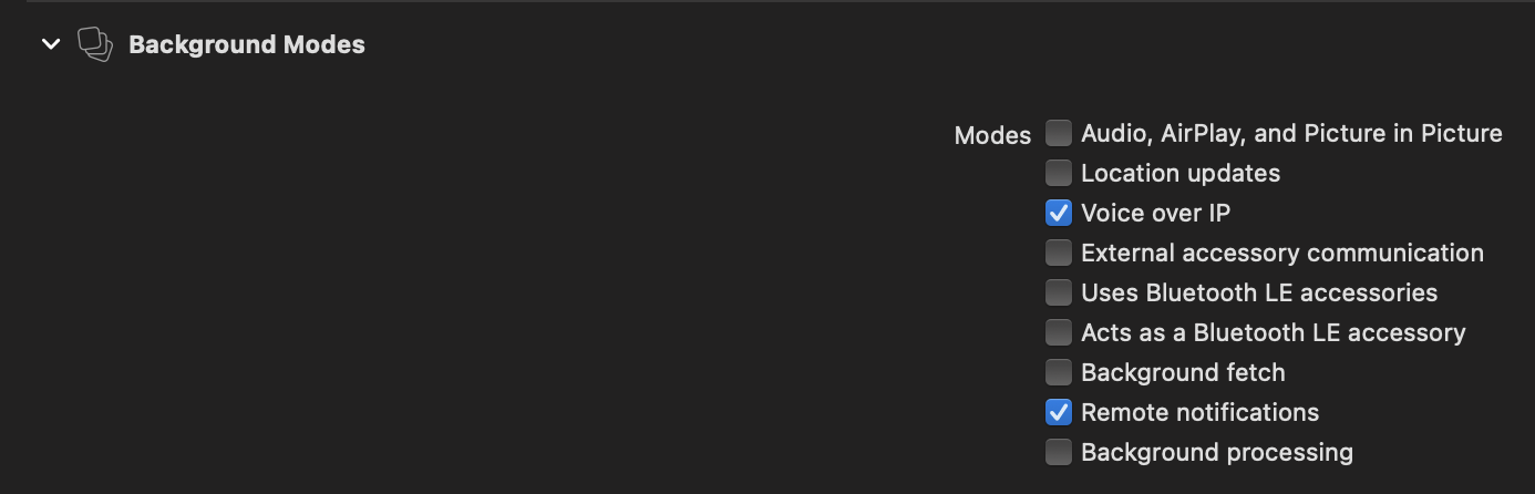 }i还启用了以下应用程序功能:-推送通知-后台模式-后台获取-远程通知- IP语音