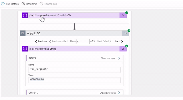 下面的图像显示了发生了什么。如您所见,我的逻辑应用程序中有两个变量,即var_MarginStr类型的string和类型float的var_MarginValues。我将按以下方式分配var_MarginVal: