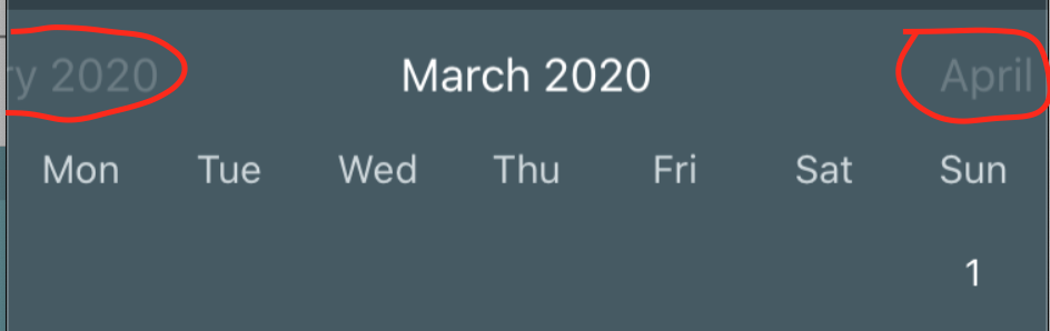 实际上,我试过所有的属性,但都找不到。我知道没有显示上个月的日期,我正在使用calendar.placeholderType = .none,但我需要删除下个月的标签。就像我们在本月一样,也就是MARCH,但我不想只显示2月或APR的标签或标题。