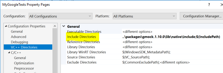 但是使用GoogleMock又如何呢?你可能会认为,由于谷歌在一段时间前合并了gtest/gmock,所以这只会奏效。只是#include "gmock/gmock.h"和嘲笑。但是不是,由模板自动添加的GoogleTest NuGet软件包根本不包括gmock文件夹。
