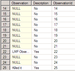现在,我想使用上面的输出值从表"YesNoAnswerWithObservation“中选择行。