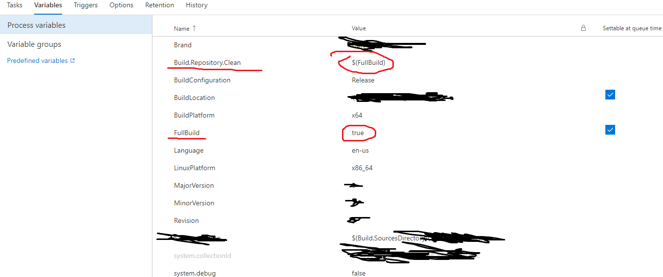 因为您无法在队列时间更改Build.Repository.Clean。所以你想用这个解决办法。这不是支持。没有一种在队列时分配干净选项的方法。