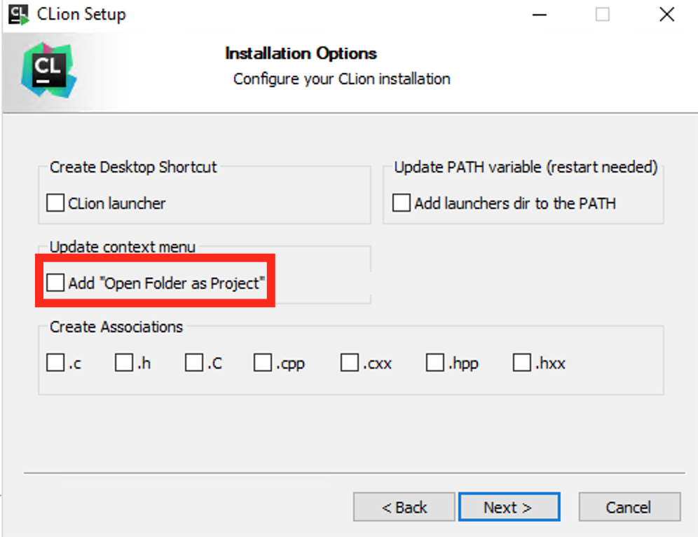 是的,在CLion中,您需要在安装过程中检查Add“”选项: