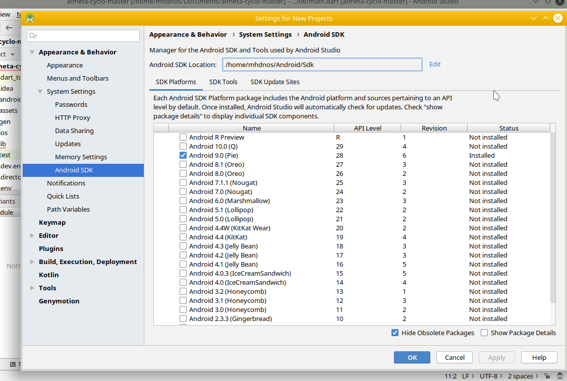 我在Ubuntu18.4上使用的是android工作室的颤音。