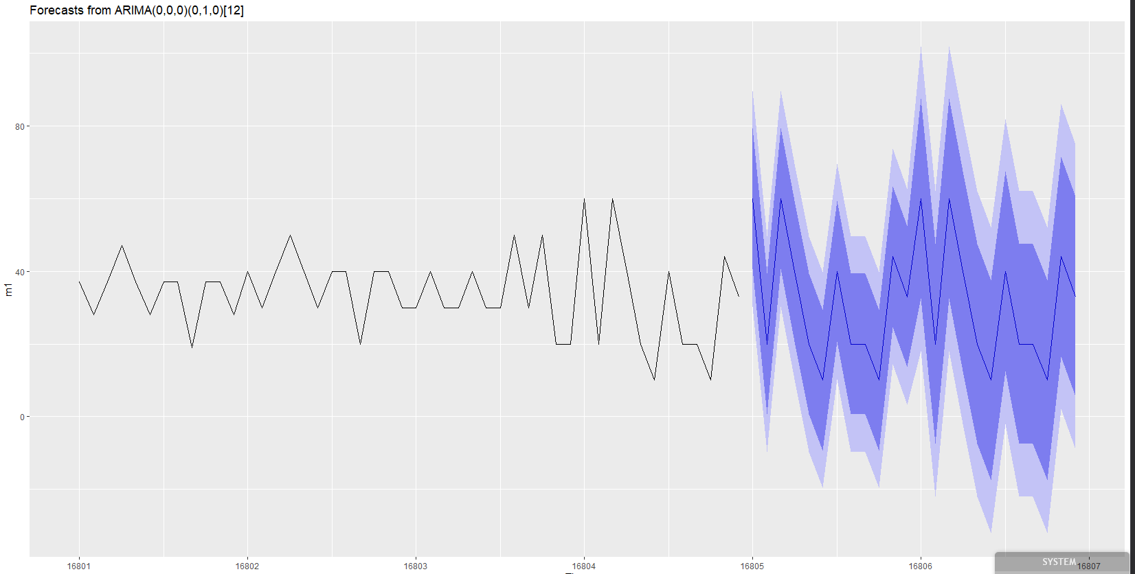 40, 20, 20, 10, 44, 33)), row.names = c(NA, -48L), class = "data.frame")我用的是ARIMA: