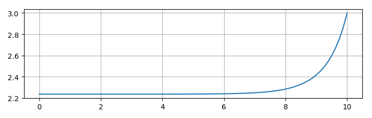 plt.plot(sol.x, sol.y[0]);这样,使用示例参数a, b, c = -1, 0.2, 3,您就可以得到一个具有y(0)=2.236081087849196和结果的图的收敛求解器调用。