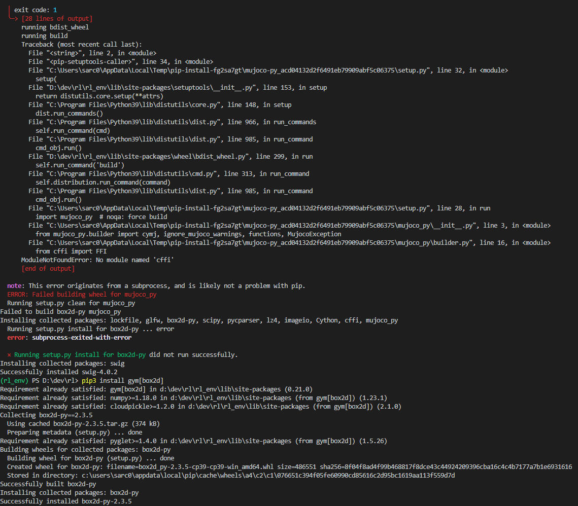 command: 'C:\Users\Junior\Anaconda\envs\gym\python.exe' -u -c 'import sys, setuptools, tokenize; sys.argv[0] = '"'"'C:\\Users\\Junior\\AppData\\Local\\Temp\\pip-install-w8awn22p\\box2d-py\\setup.py'"'"'; __file__='"'"'C:\\Users\\Junior\\AppData\\Local\\Temp\\pip-install-w8awn22p\\box2d-py\\setup.py'"'"';f=getattr(tokenize, '"'"'open'"'"', open)(__file__);code=f.read().replace('"'"'\r\n'"'"', '"'"'\n'"'"');f.close();exec(compile(code, __file__, '"'"'exec'"'"'))' install --record 'C:\Users\Junior\AppData\Local\Temp\pip-record-netg1nlq\install-record.txt' --single-version-externally-managed --compile --install-headers 'C:\Users\Junior\Anaconda\envs\gym\Include\box2d-py'