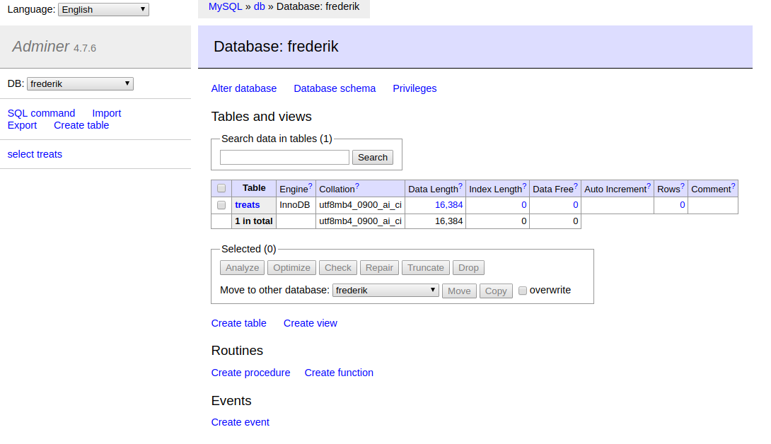 我能够浏览管理员UI (:8080)、登录(root\mypass)和浏览数据库frederik