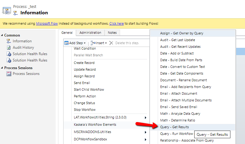 在第二个工作流中,使用“查询-获取结果”功能。