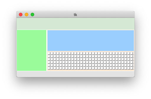 如果我试图使用pack()来安排这些最里面的窗格中的东西,Python会因为使用多个几何管理器而对我大喊大叫。但是当我考虑如何用grid来完成这个任务时,我只是找不到一种方法将最内部的窗格细分为更小的网格。
