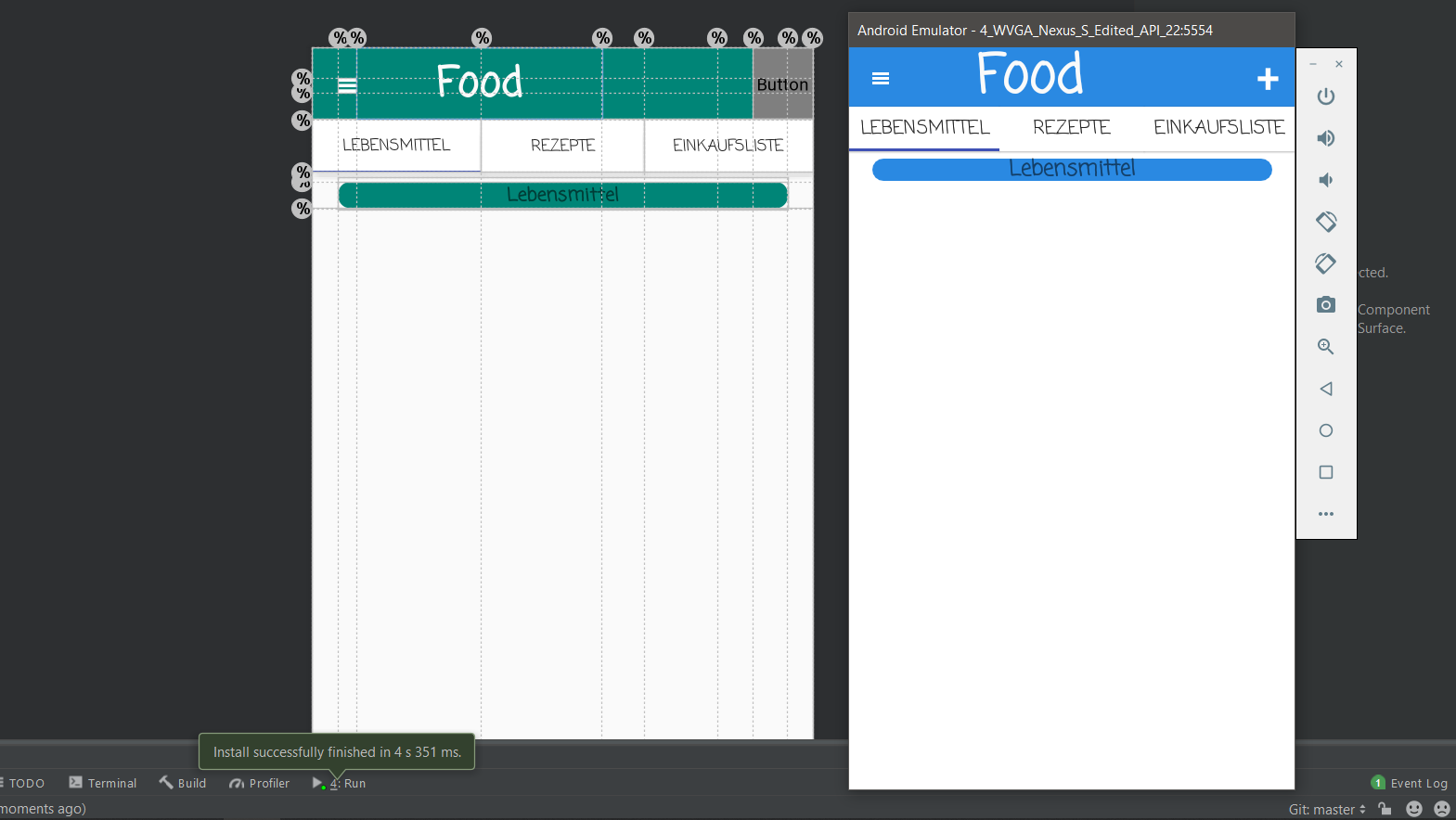 他的视图(工作良好-左安卓工作室,右模拟器):