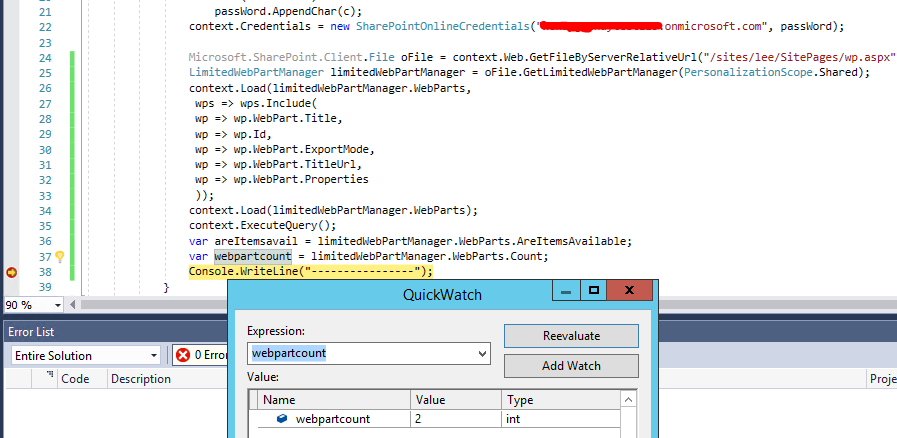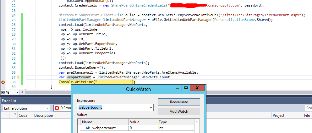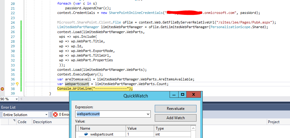 var webpartcount = limitedWebPartManager.WebParts.Count;上面的areItemsavail显示true,而webpartcount显示值0。