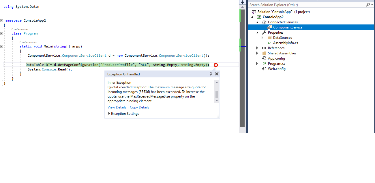 at ConsoleApp2.ComponentService.ComponentServiceClient.GetPageConfiguration(String pageName, String roleCode, String processName, String wizardPageConfigGUID) in D:\Work\tempABC\local\ConsoleApp2\ConsoleApp2\Connected Services\ComponentService\Reference.cs:line 5684