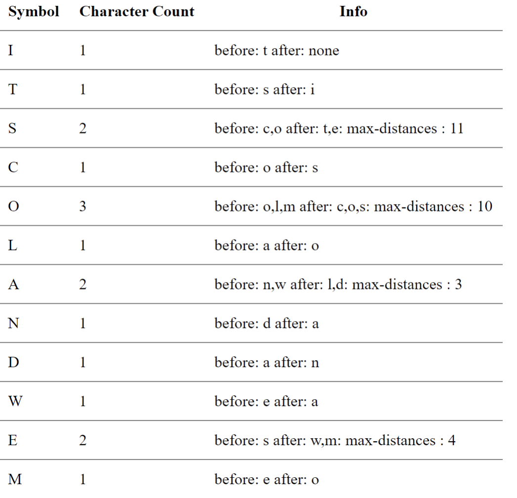 map.set(cur, (map.get(cur) || new CharStats).add(arr[i - 1], arr[i + 1], i)),