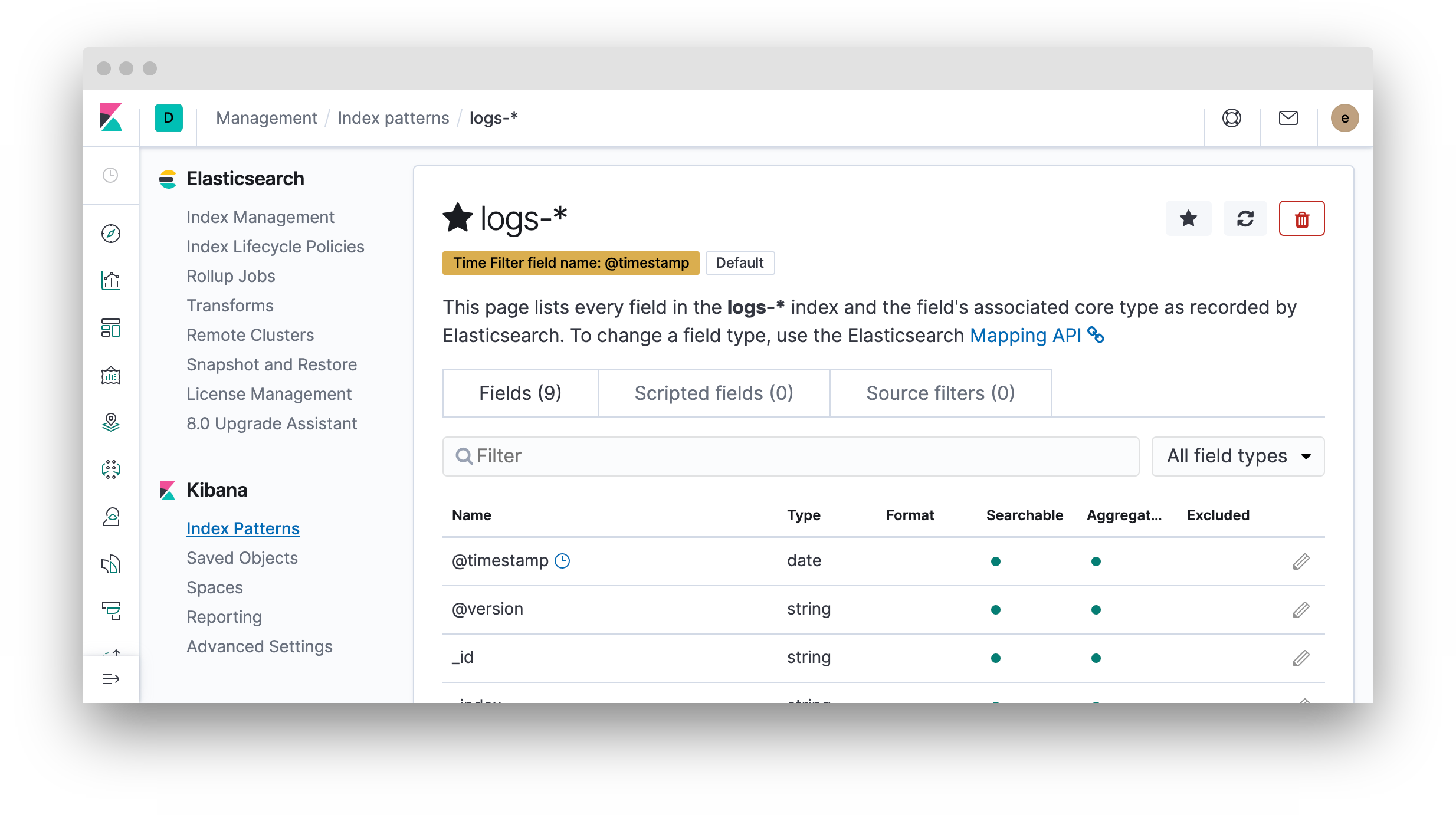 在Kibana配置文件中的日志应用程序设置中指定了日志的默认源配置。默认配置使用文件-*索引模式查询数据。