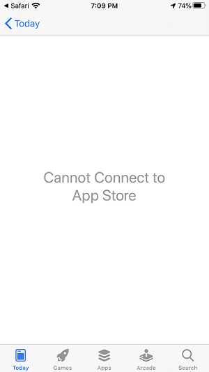 但是对于ios,当从警报中点击“是”选项时,应用程序页将不会加载。Cannot connect to AppStore 将显示在Appstore应用程序.上。