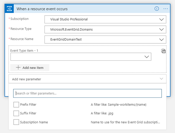 我已经设置了一个具有多个主题的事件网格域。我希望创建一个逻辑应用程序,它将订阅我的事件网格域中的主题。事件网格域的流触发器似乎缺少主题字段,以便只允许它订阅特定的主题。我是不是遗漏了什么?
