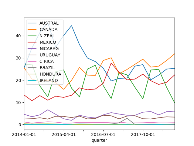 AUSTRAL CANADA N ZEAL MEXICO NICARAG URUGUAY C RICA BRAZIL HONDURA IRELAND