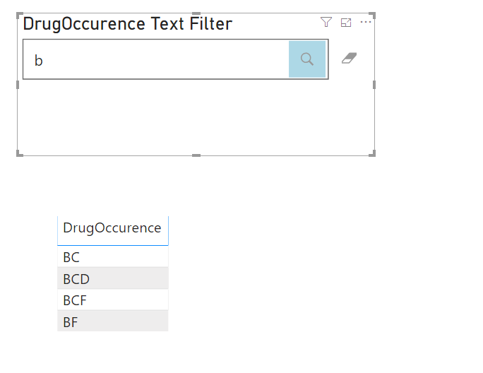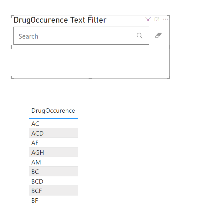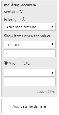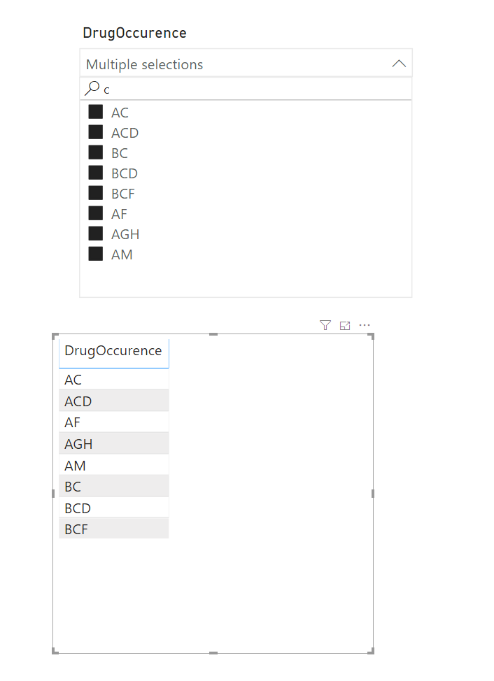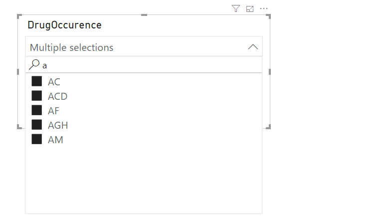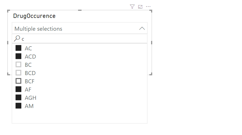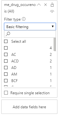 我的问题是,在Power BI中,似乎没有一种开箱即用的方法来做到这一点?如果我简单地将这个列拖到“这个页面上的过滤器”侧边栏,我只会得到通过不同药物组合过滤的选项。