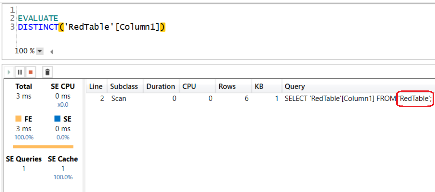 我可以补充说,这个bug只适用于用M创建的表(无论是输入数据还是将其插入服务器)。此错误不能在DAX表中重复使用。在更改DAX表的名称之后更新DAX表,并在Daxstudio的Server Timings查询列中显示实际(非原始)名称。