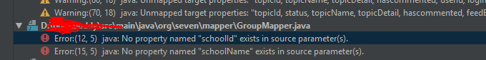 错误:(12,5) java:源参数.中不存在名为"schoolId“的属性。
