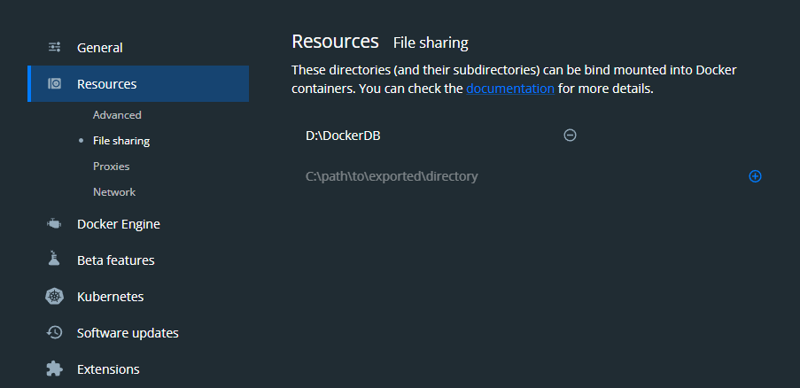 我只想在windows 10上运行最新的docker映像,并在主机上安装一个数据目录。