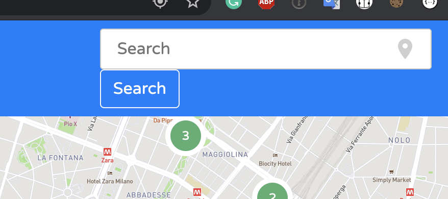 <div class="d-flex"> <span class="algolia-places mr-2" style="position: relative; display: inline-block; direction: ltr;"> *other your code* </span> <button class="btn btn-outline-light my-2 my-sm-0" type="submit">Search</button> </div>