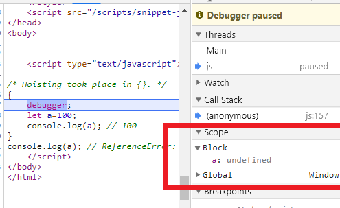 它不仅仅是简单的块--任何级别的代码都会导致同样的事情发生(比如在顶层,或者在for块中,或者在函数内部)。
