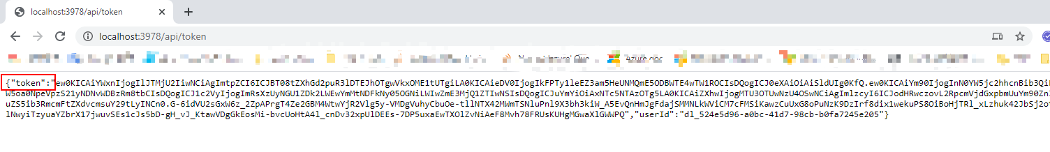 }将机密替换为您自己的直接线路机密后运行该项目。您将能够通过本地的url:http://localhost:3978/api/token获得令牌: