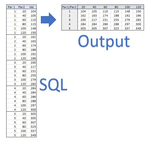 如何在SQL (,par2,value)之外创建Par1 x Par2表输出(以便您可以以友好和感性的方式将其呈现给用户)。示例: