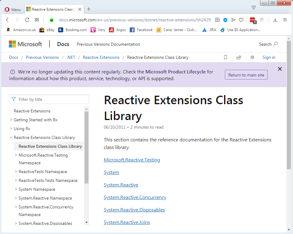 Microsoft网站上的大部分反应性扩展库的文档中说:“我们不再定期更新这些内容。有关如何支持此产品、服务、技术或API的信息,请查看Microsoft产品生命周期。”