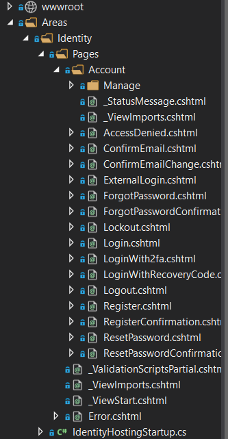 如果您在没有指定--files标志或--useDefaultUI标志的情况下运行标识支架,那么将在项目中创建所有可用的标识UI页面。现在,如果您想修改登录UI,可以修改your project --> Areas-->Identity -->Pages-->Account -->Login.cshtml页面中的相关页面。