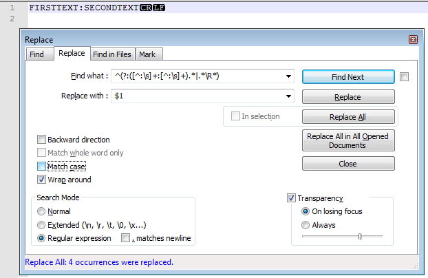 查找:^(?:([^:\s]+:[^:\s]+).*|.*\R*)