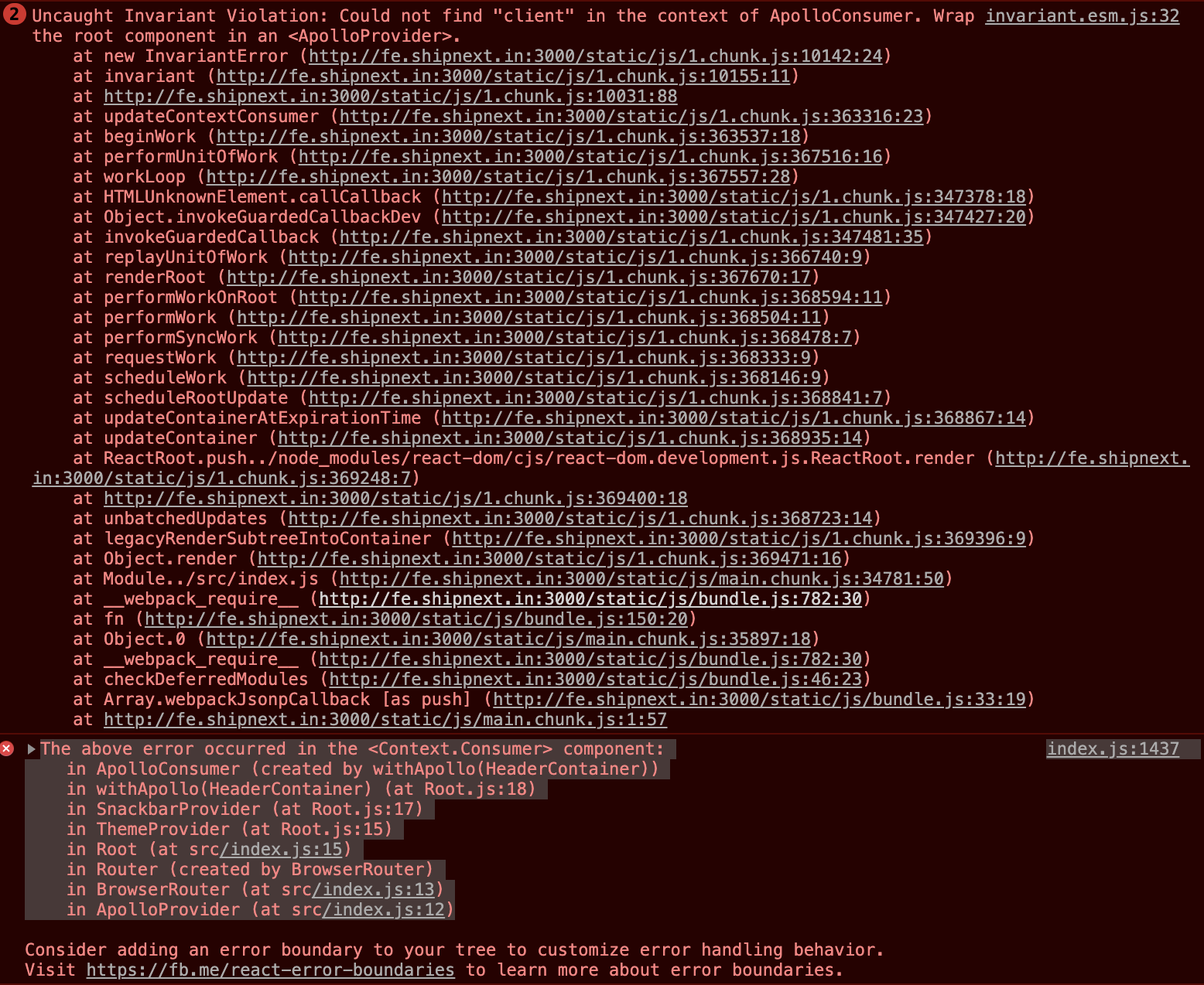 Could not find "client" in the context of ApolloConsumer. Wrap the root component in an <ApolloProvider>.我的应用程序最外层的组件确实是ApolloProvider,