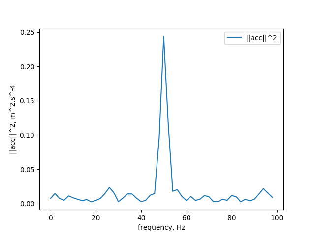 由于“XYZ_Acc”被定义为信号各分量的线性组合,因此取其DFT是有意义的。它相当于在方向(1,1,1)上使用一维声功率计。但是可以采用更多与物理能量相关的观点。计算DFT类似于将信号写入正弦波之和。如果加速度矢量写入:
