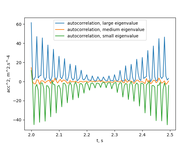 print "found fundamental frequency :", 1.0/(peakperiod[j]), 'eigenvalue', autocorreigval[peaks[j],2],' dir vibration ', autocorreigvec[peaks[j],:,2]