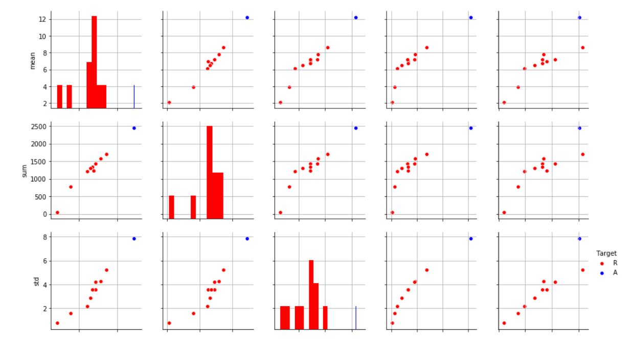 然后在0.5秒的频率下对数据'XYZ_Acc_Mag‘进行采样,并在一个新的数据帧中提取均值、标准差等时间统计数据。对图显示了上面线图中11:01:35所显示的异常。