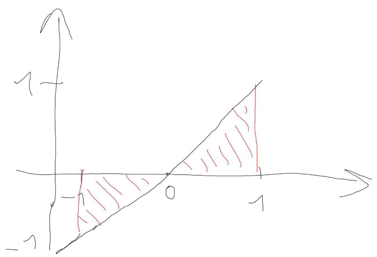 例如:对于下面的图片,从-1到1的“正常”积分的结果是0,对于绝对积分,结果是1。