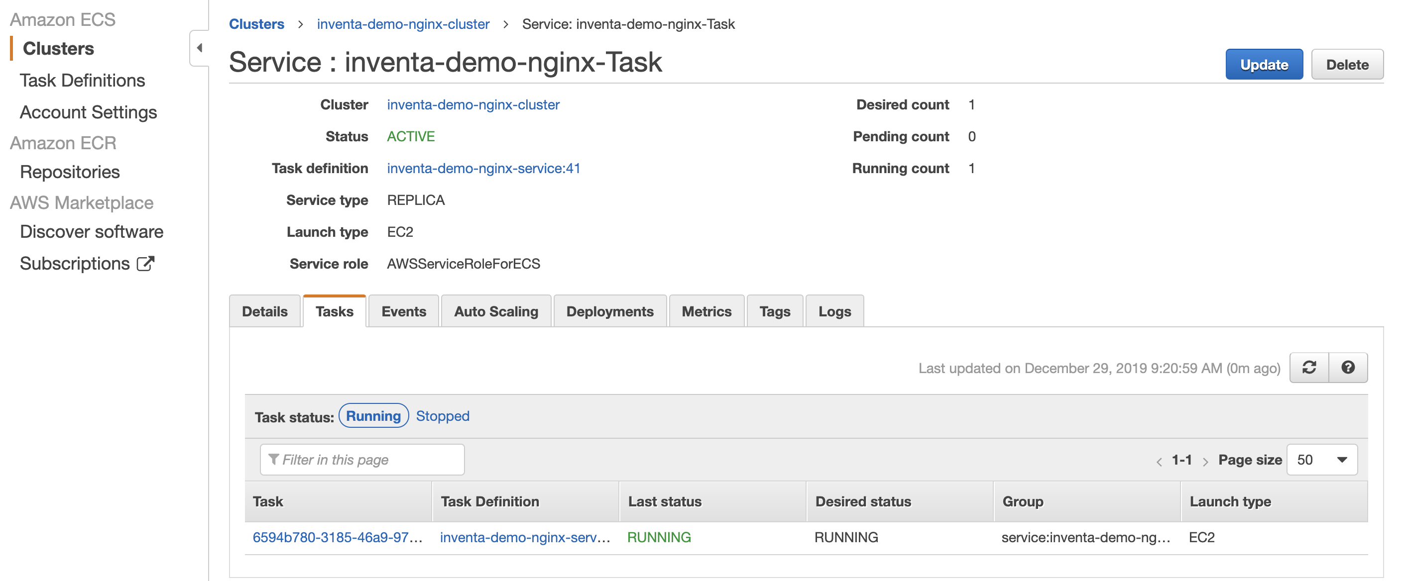 1)是的,您的任务定义配置了适当的ECR存储库版本。集群下的服务负责确保正确的任务在EC2实例中启动和运行。