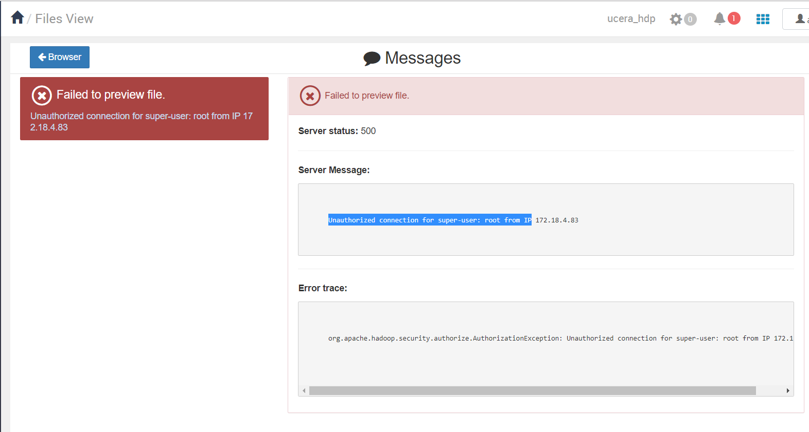 在Ambari (v2.7.3) FileView (HDP v3.1.0)中上传或打开文件时遇到问题。获取误差