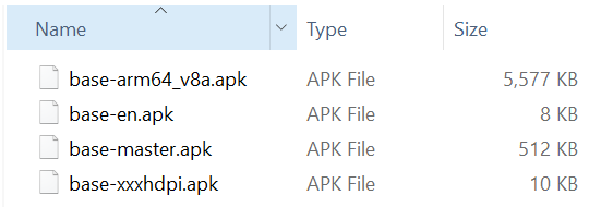 java -jar .\bundletool-all-0.12.0.jar extract-apks --apks=.\samsung.apks --output-dir=.\my_samsung_APK_set.apks --device-spec=.\samsung.json生成一个名为my_samsung_APK_set.apks的文件夹,我可以在那里看到多个APKs。